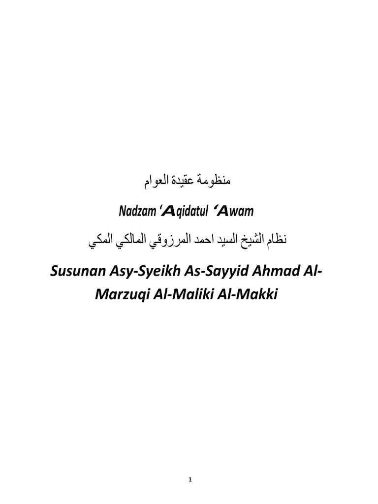 J. Nama pengarangnya adalah As- Syekh As- Sayyid Ahmad Al- Marzuqi.