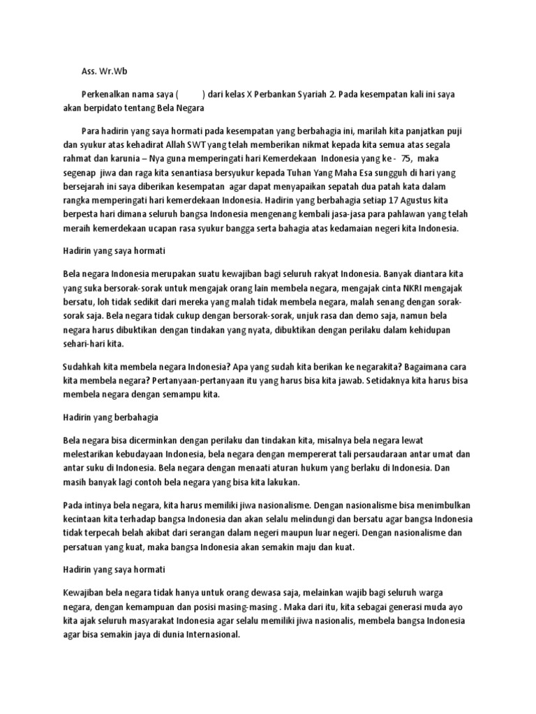 akan berpidato tentang Bela Negara