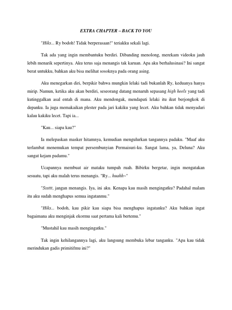 "Sssttt, jangan menangis. Iya, ini aku. Kenapa kau masih mengingatku? Padahal malam