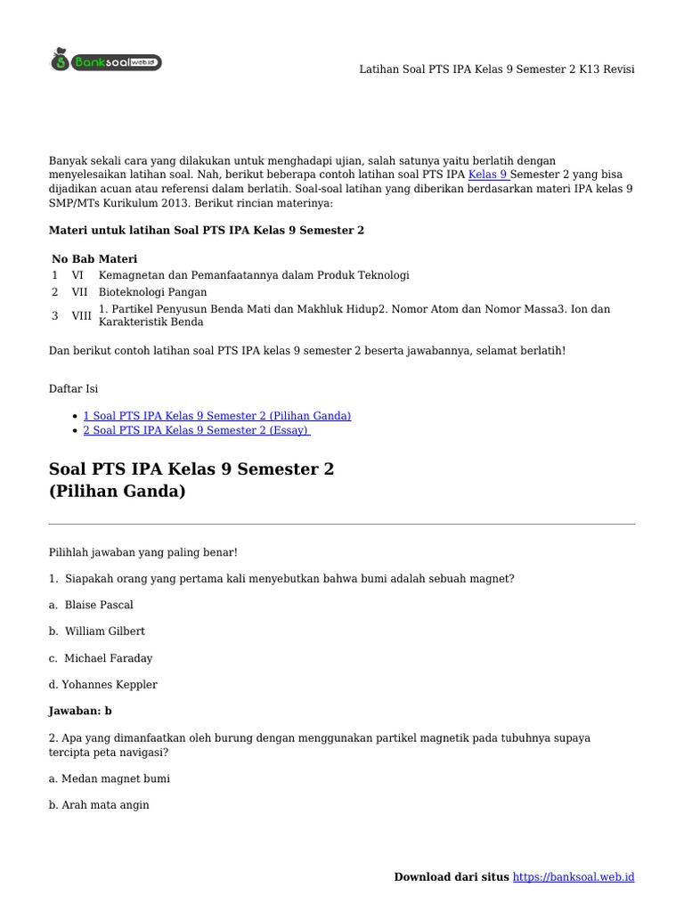 Demikianlah beberapa contoh latihan soal PTS IPA Kelas 9 Semester 2 beserta kunci jawaban. Semoga