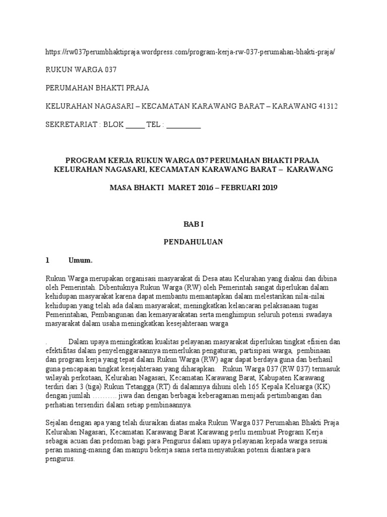 PROGRAM KERJA RUKUN WARGA 037 PERUMAHAN BHAKTI PRAJA