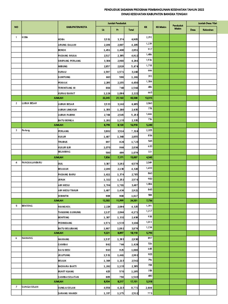 Data Penduduk Bangka Tengah 2022