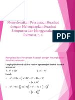 1. Tentukan nilai diskriminan dari persamaan berikut lalu tentukan banyak akar/penyelesaiannya: