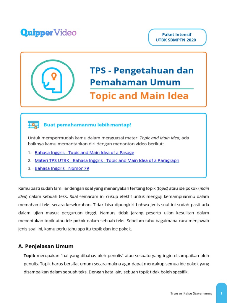 Untuk mempermudah kamu dalam menguasai materi Topic and Main Idea, ada