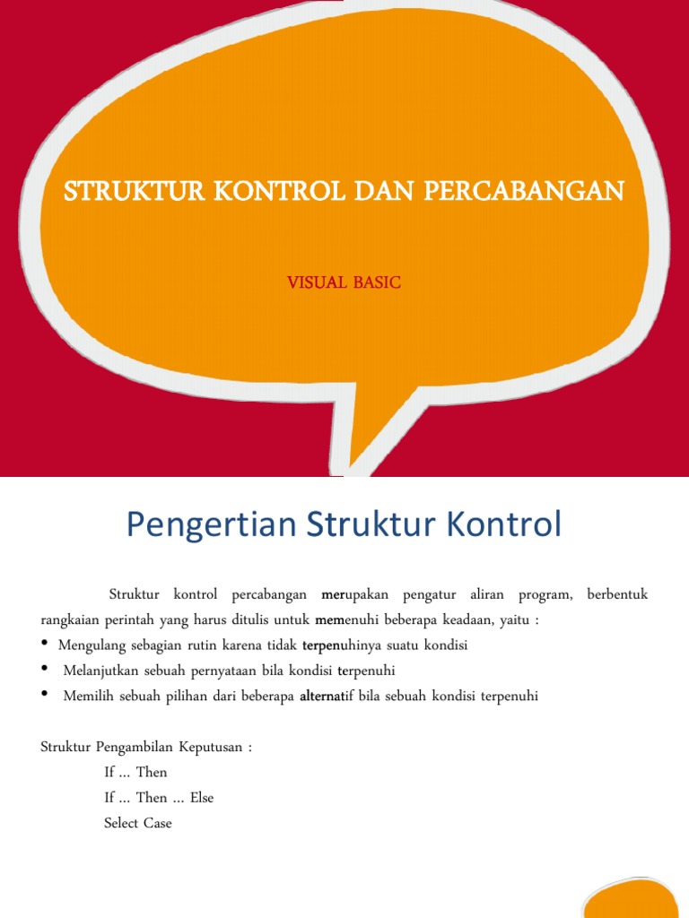 Struktur kontrol percabangan merupakan pengatur aliran program, berbentuk