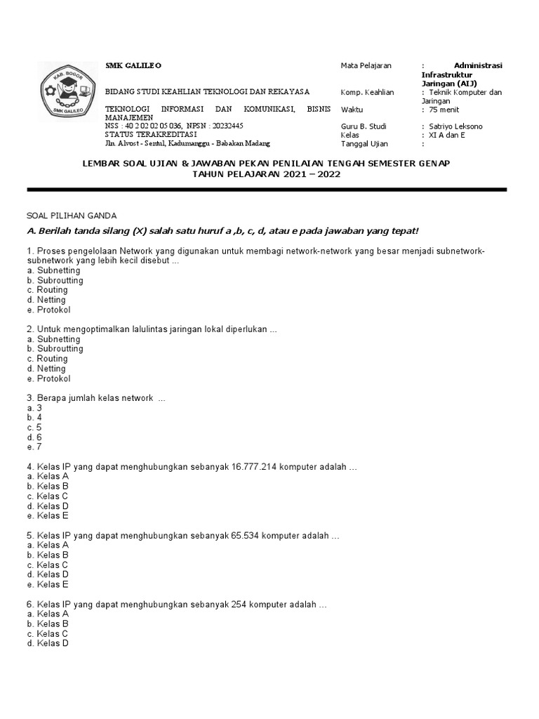 LEMBAR SOAL UJIAN & JAWABAN PEKAN PENILAIAN TENGAH SEMESTER GENAP