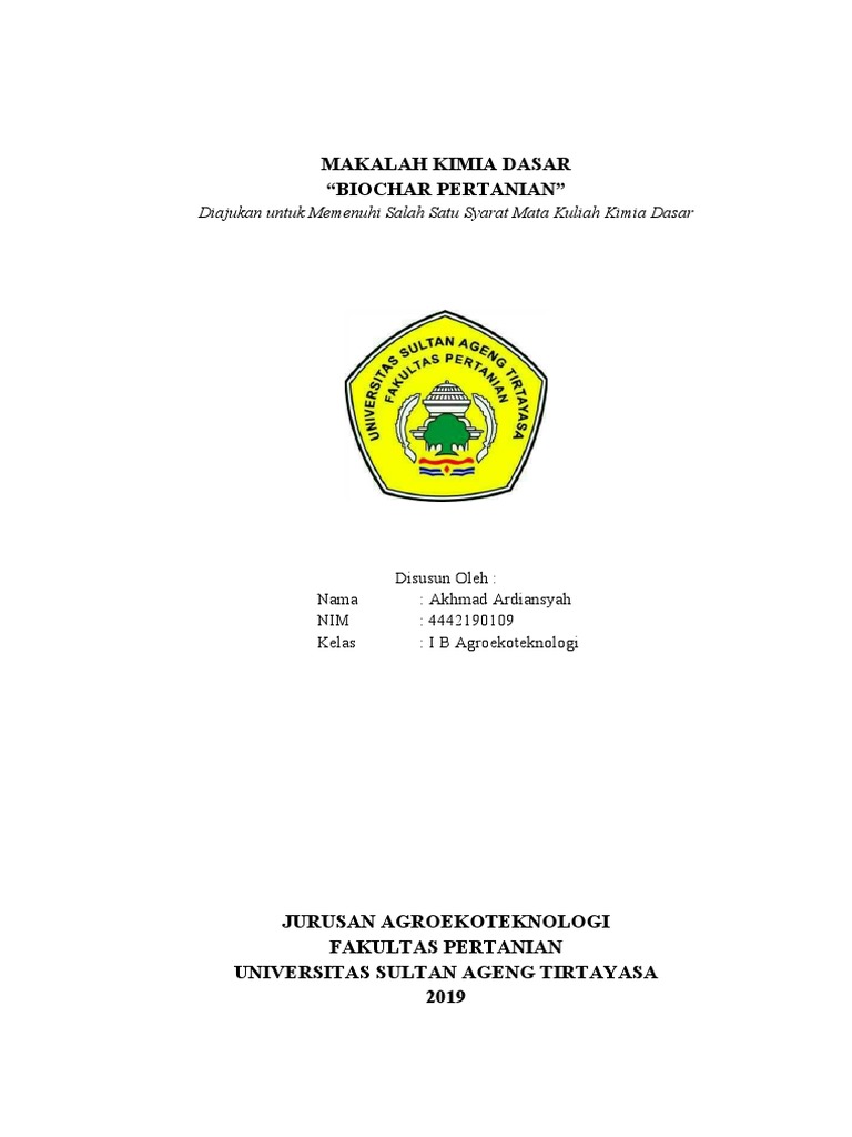 Diajukan untuk Memenuhi Salah Satu Syarat Mata Kuliah Kimia Dasar