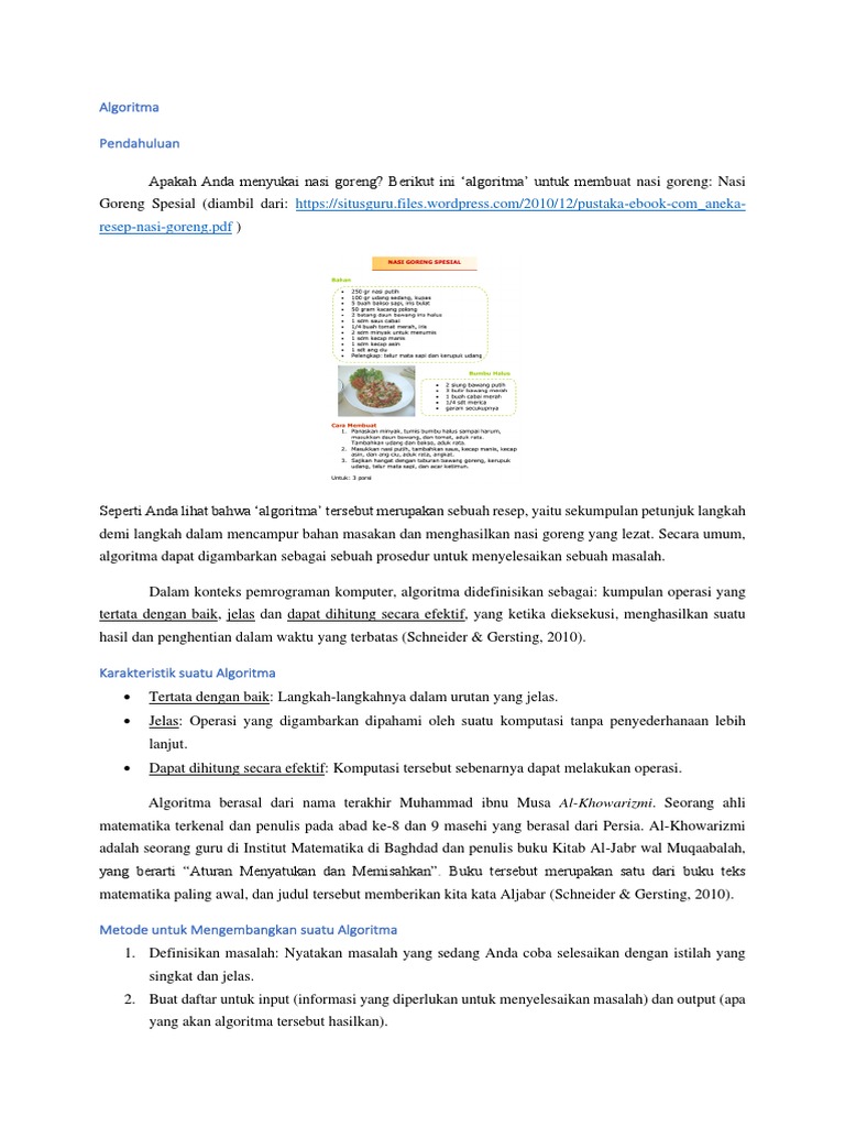 Apakah Anda menyukai nasi goreng? Berikut ini ‘algoritma’ untuk membuat nasi goreng: Nasi