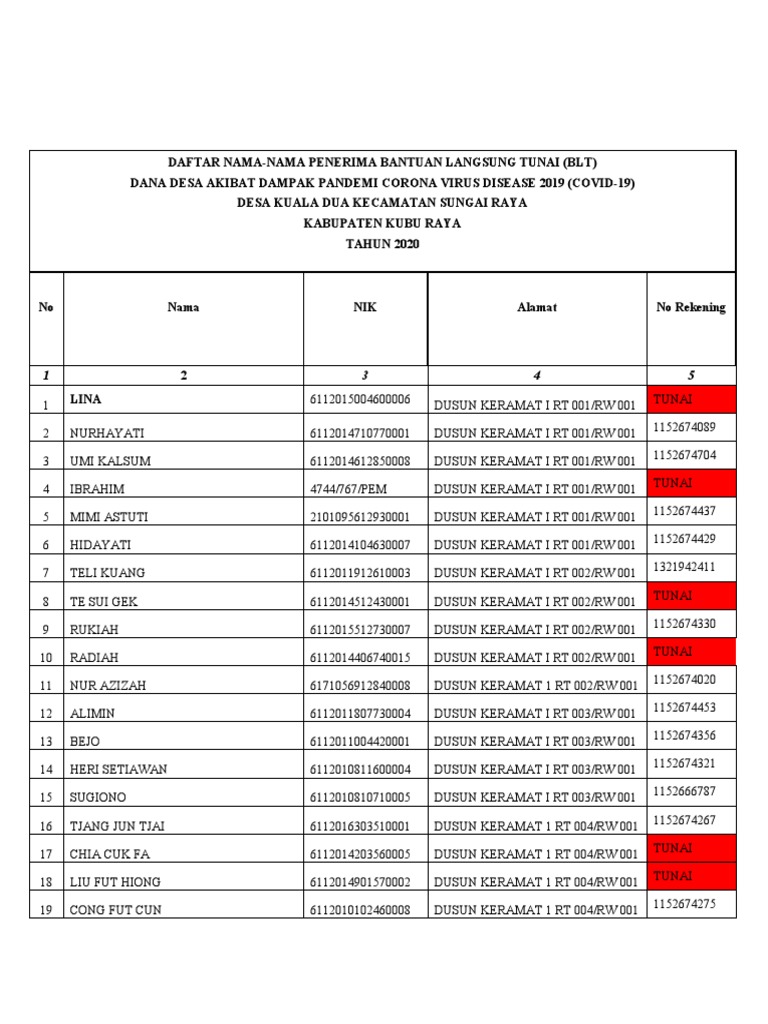 1 LINA 6112015004600006 DUSUN KERAMAT I RT 001/RW 001 TUNAI