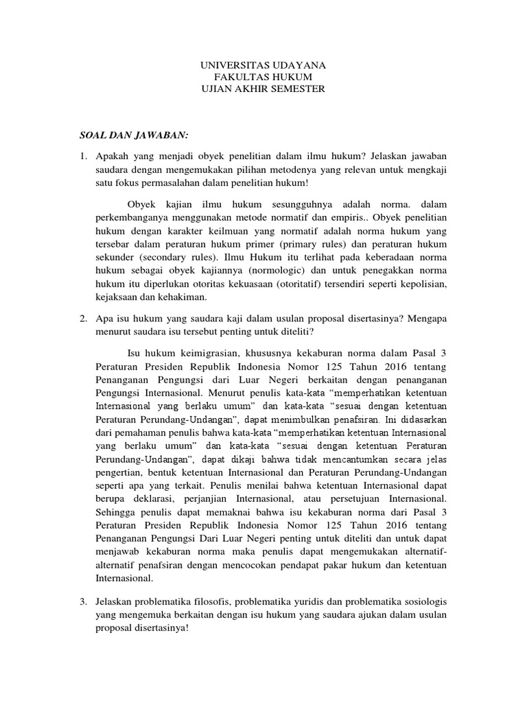 1. Apakah yang menjadi obyek penelitian dalam ilmu hukum? Jelaskan jawaban