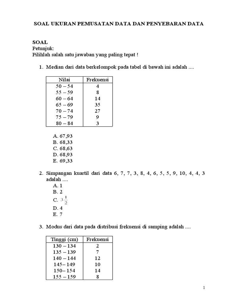 SOAL UKURAN PEMUSATAN DATA DAN PENYEBARAN DATA