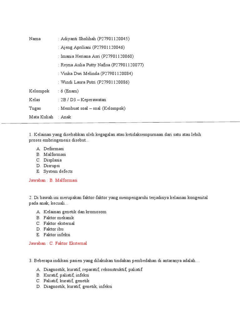 2. Di bawah ini merupakan faktor-faktor yang mempengaruhi terjadinya kelainan kongenital