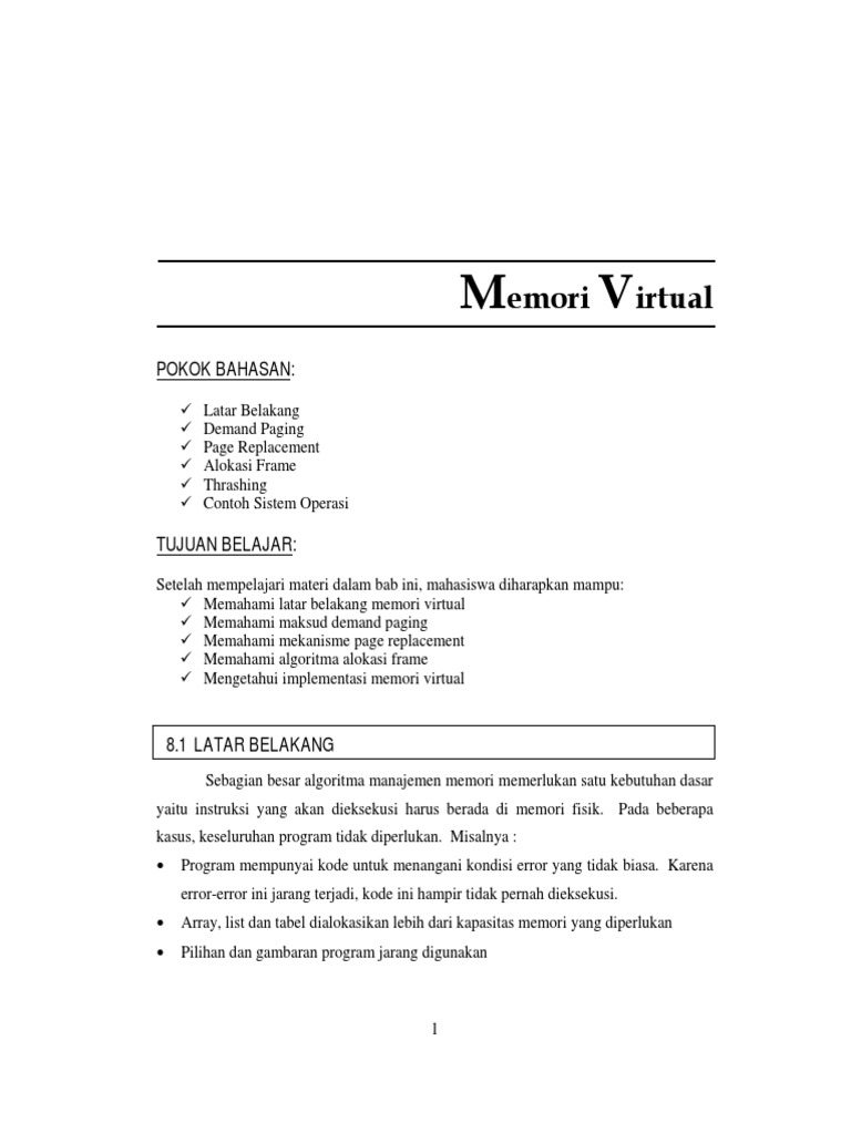 Memori virtual adalah teknik yang memisahkan memori logika user dari