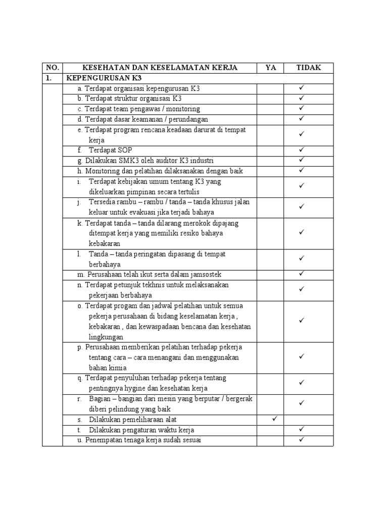 e. Pekerja telah mendapat pelatihan sesuai tugasnya