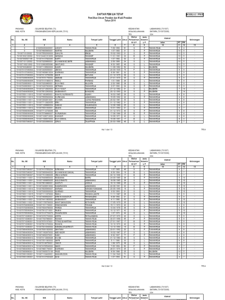 DAFTAR PEMILIH TETAP MODEL A.