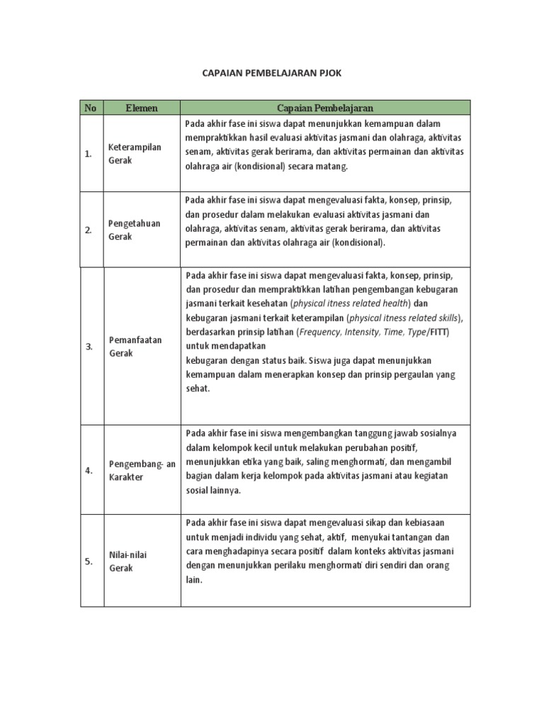 CAPAIAN PEMBELAJARAN PJOK