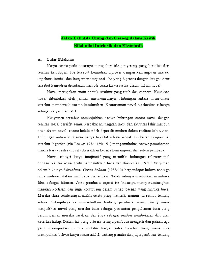 karya Mochtar Lubis dan juga Oeroeg karya Hella Haasse. Jalan Tak Ada Ujung