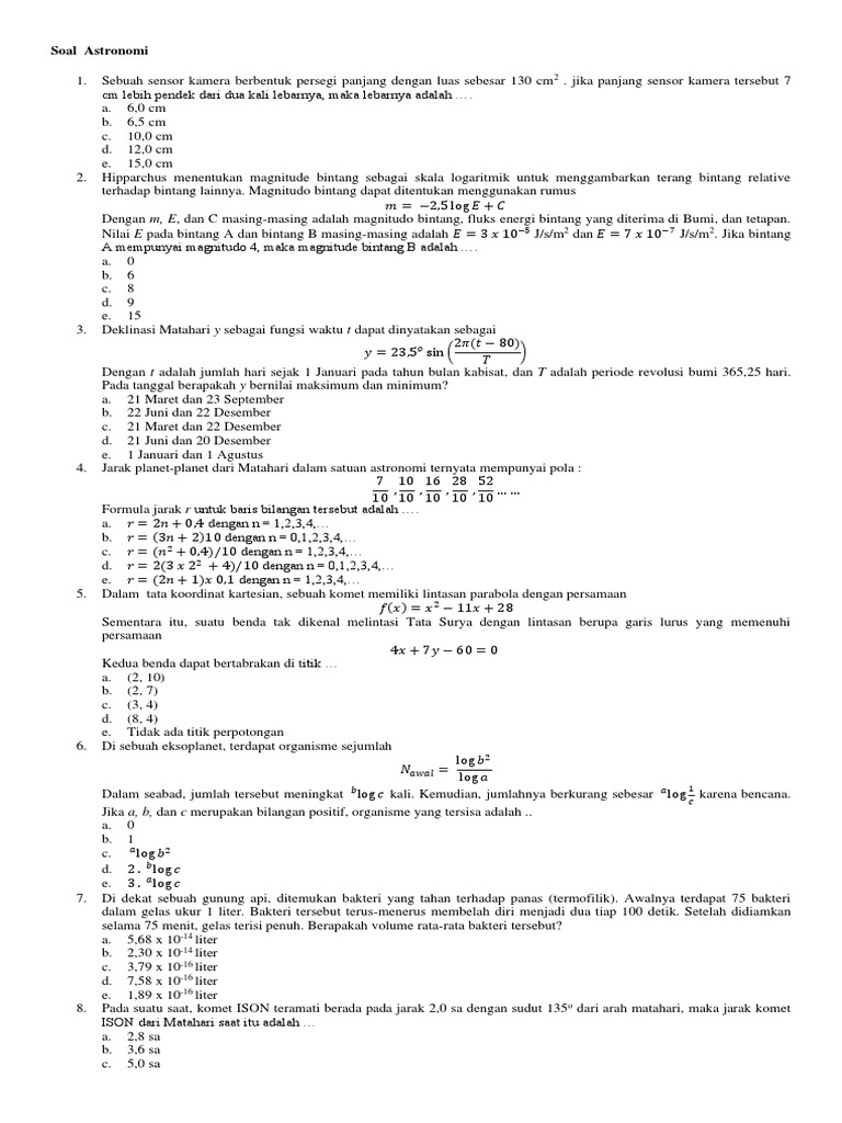 18. Jika x buah teleskop survei dioperasikan selama x jam setiap hari selama x hari, teleskop tersebut dapat menemukan x
