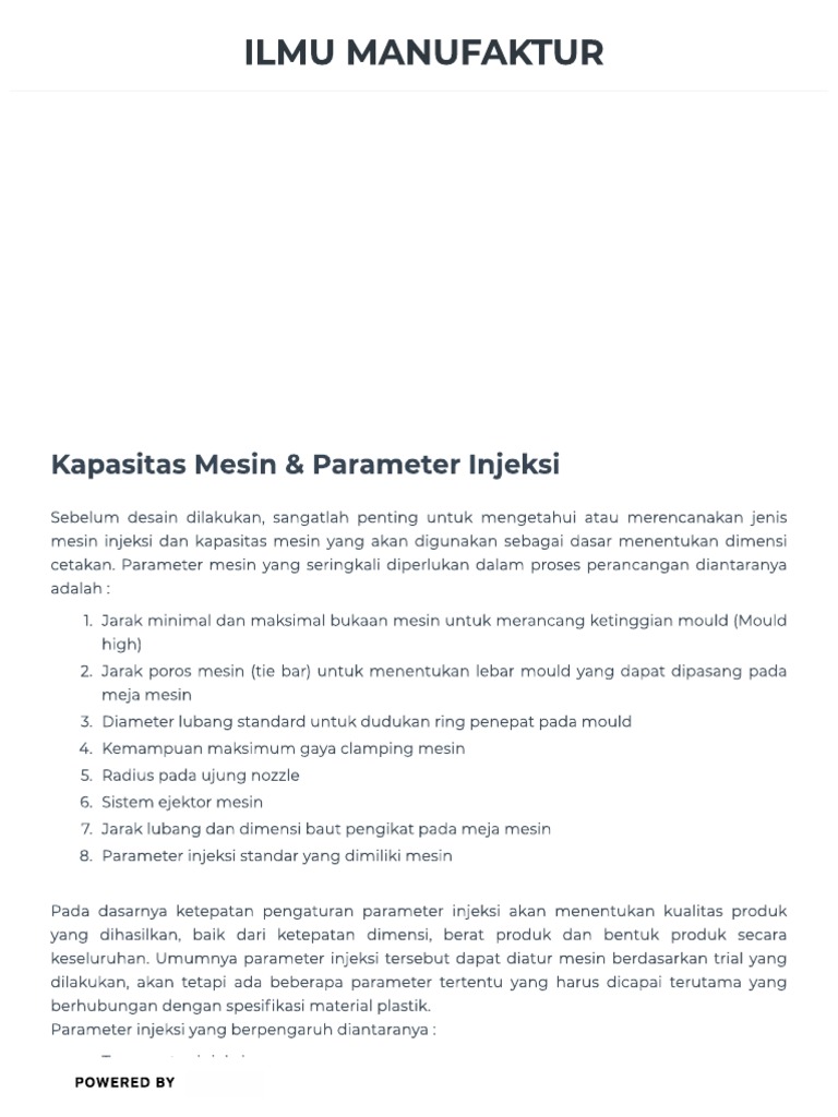 Kapasitas Mesin & Parameter Injeksi