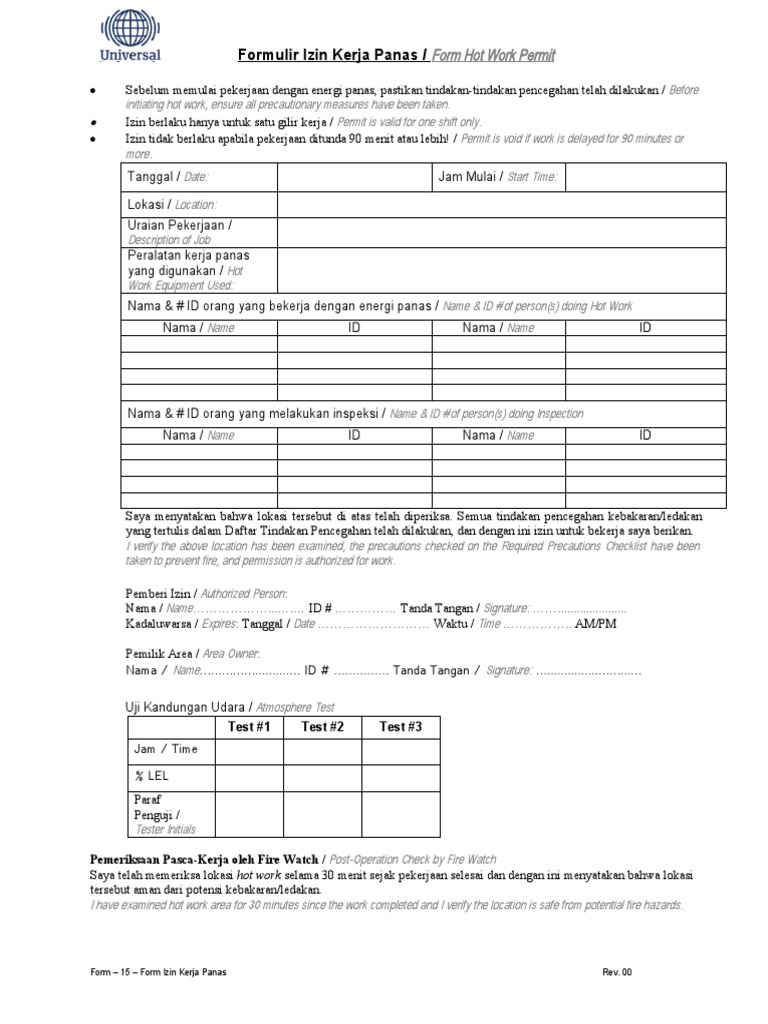 Form – 15 – Form Izin Kerja Panas Rev. 00