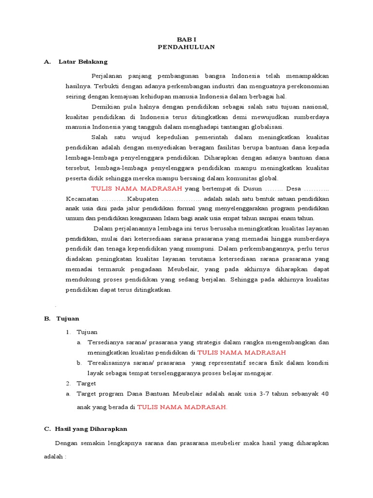 Oleh karena itu, sebagai langkah awal dibentuk proposal permohonan perlengkapan
