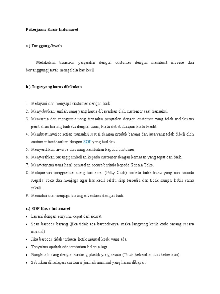 c.) SOP Kasir Indomaret