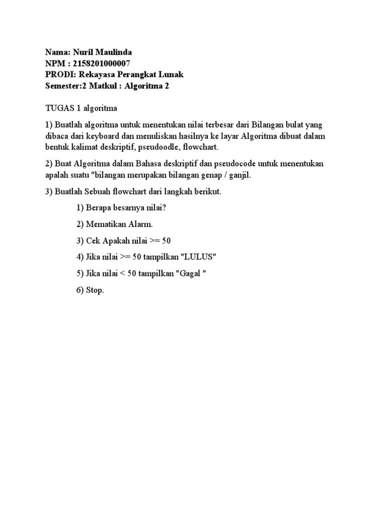 2) Buat Algoritma dalam Bahasa deskriptif dan pseudocode untuk menentukan