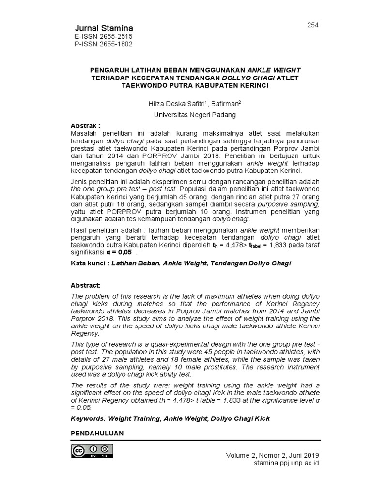 Kata kunci : Latihan Beban, Ankle Weight, Tendangan Dollyo Chagi