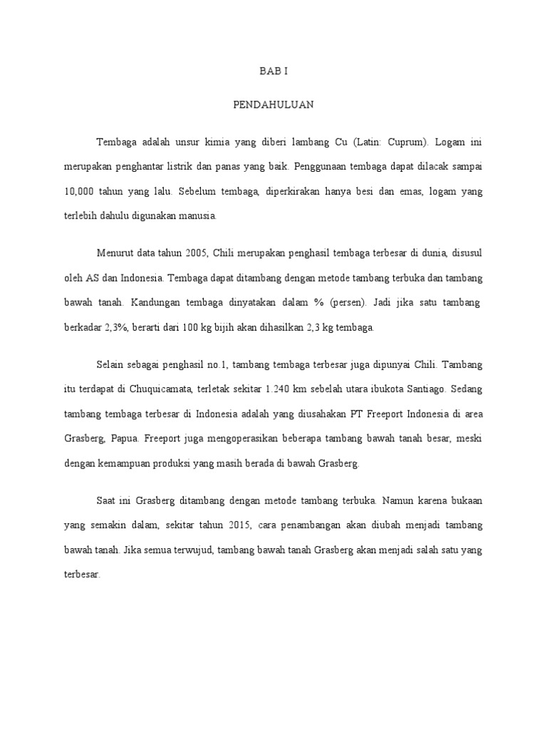 oleh AS dan Indonesia. Tembaga dapat ditambang dengan metode tambang terbuka dan tambang