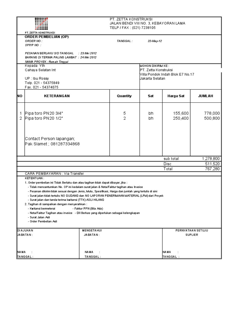 - Tidak mencantumkan No. OP ini kedalam surat jalan & Nota/Faktur tagihan atau Invoice