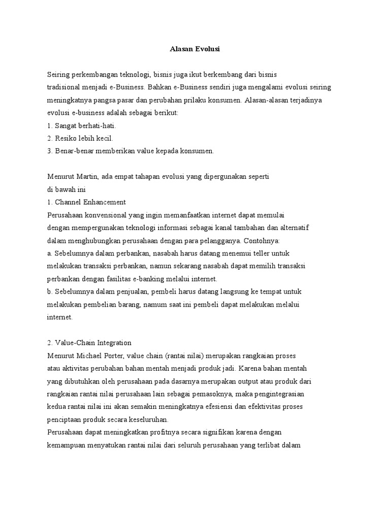 tradisional menjadi e-Business. Bahkan e-Business sendiri juga mengalami evolusi seiring