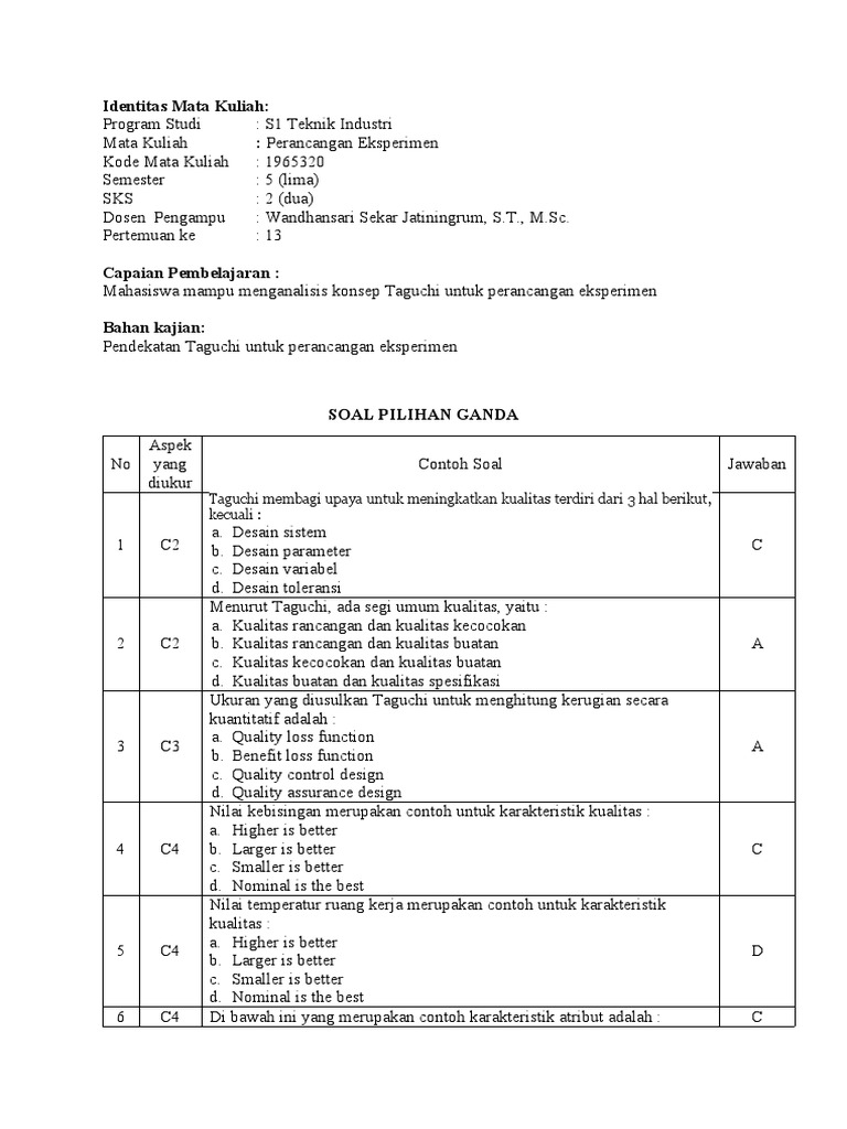 1 C2 dan mendasar dari Taguchi! (skor: dan suatu nilai target. Produk harus