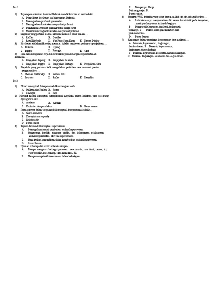 1) Tujuan pemerintahan kolonial Belanda mendirikan rumah sakit adalah…. Benar semua.