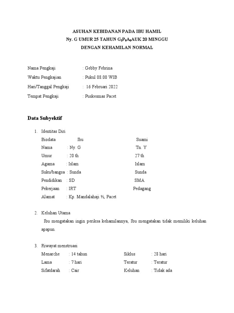Ny. G UMUR 25 TAHUN G1P0A0AUK 20 MINGGU