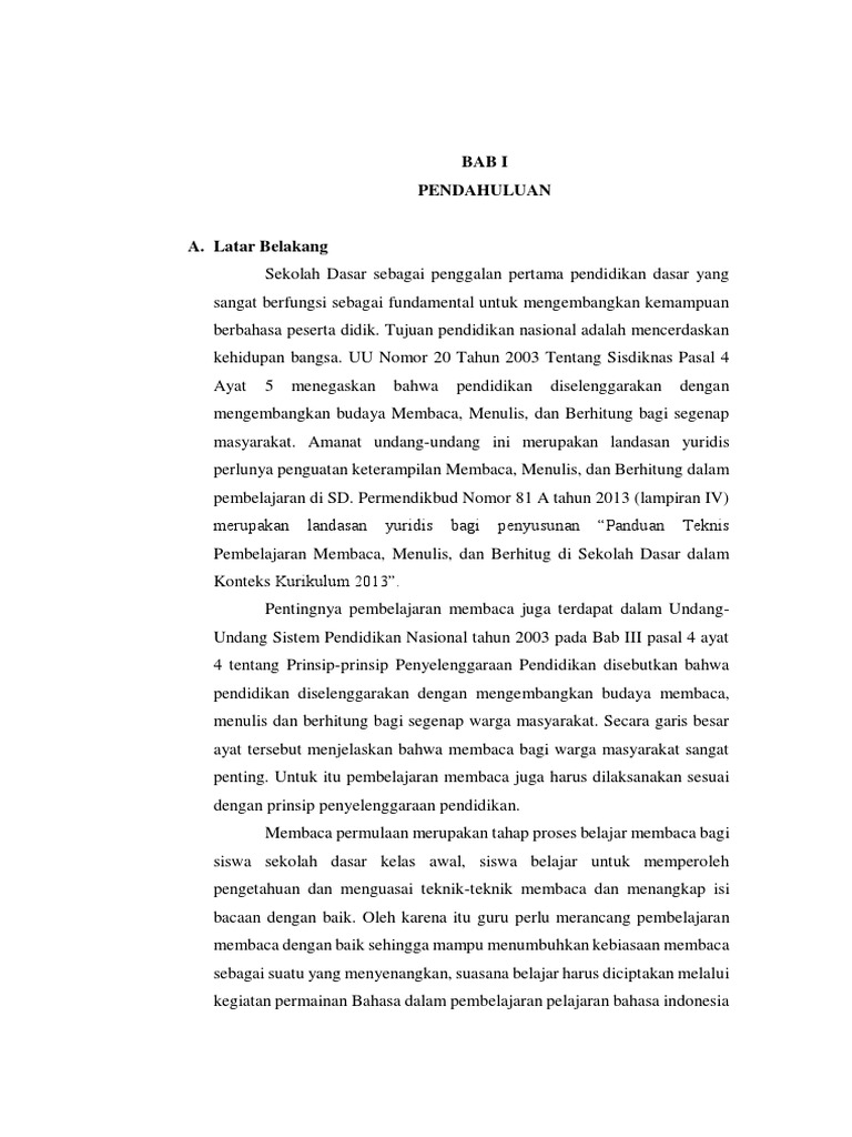 Pembelajaran Membaca, Menulis, dan Berhitug di Sekolah Dasar dalam
