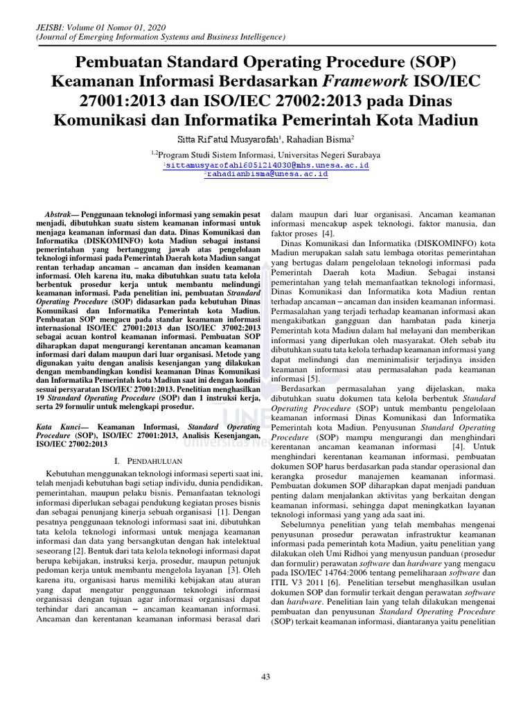 Dalam penyusunan dan pembuatan SOP dilakukan metode B. ISO/IEC 27001:2013