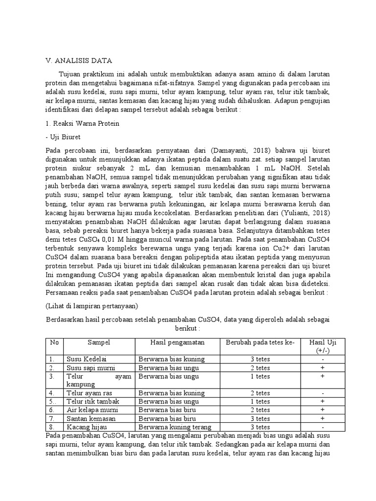 Pada percobaan ini, berdasarkan pernyataan dari (Damayanti, 2018) bahwa uji biuret