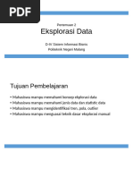 • Visualisasikan data untuk memvalidasi karakteristik utama data atau gali