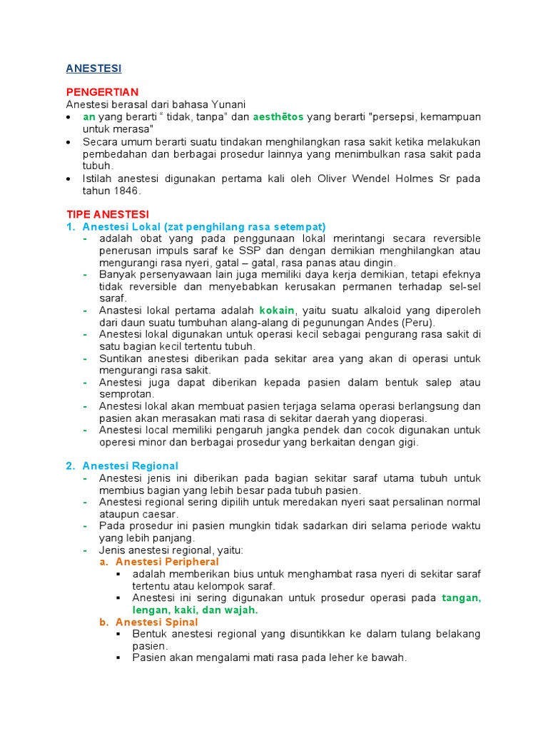 - adalah obat yang dapat menimbulkan anastesia atau narkosa (yunan = tanpa,