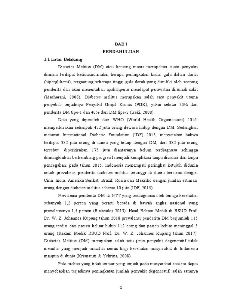 Diabetes Melitus (DM) merupakan salah satu jenis penyakit degeneratif tidak