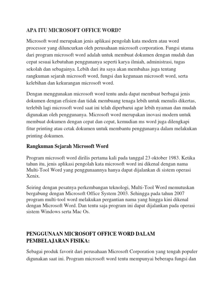 rangkuman sejarah microsoft word, fungsi dan kegunaan microsoft word, serta