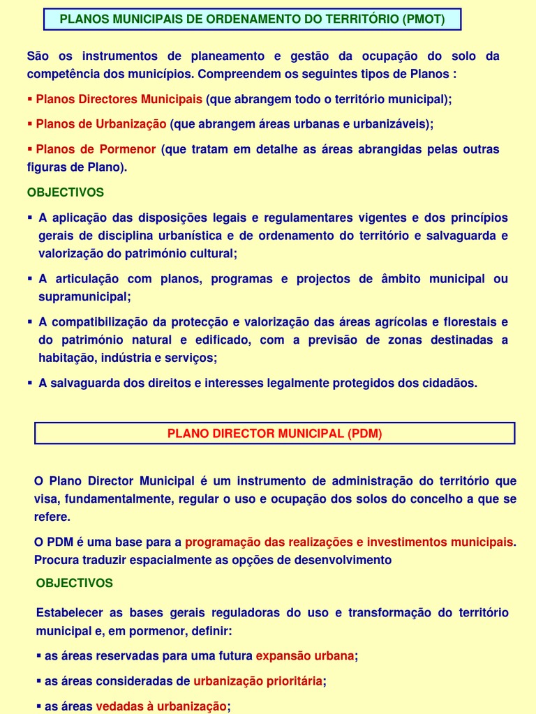PLANOS MUNICIPAIS DE ORDENAMENTO DO TERRITÓRIO (PMOT)