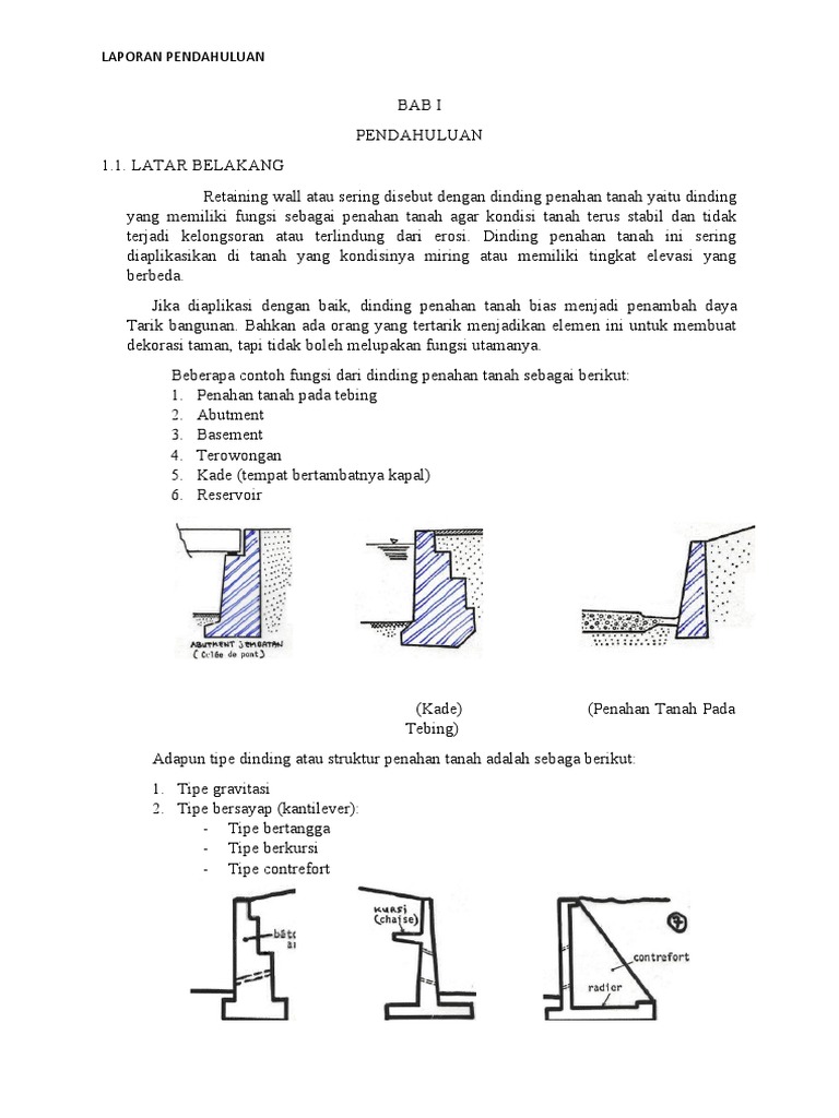 Adapun tipe dinding atau struktur penahan tanah adalah sebaga berikut: