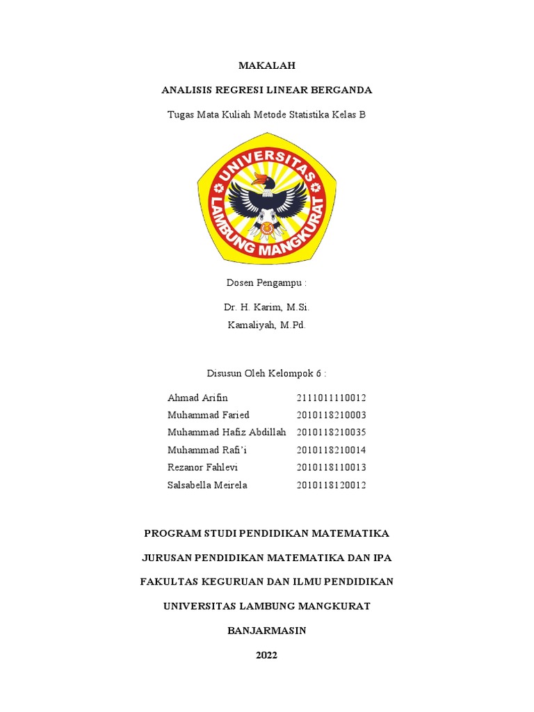 Fisika, J., Matematika, F., Ilmu, D., & Alam, P. (2016). REGRESI LINIER BERGANDA