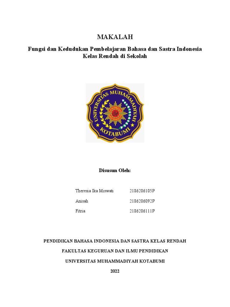 mengenai pemahaman tentang Fungsi dan kedudukan Bahasa dan Sastra Indonesia Kelas Rendah