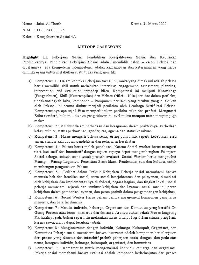 a) Kompetensi 1 : Dalam konteks Pekerjaan Sosial ini, maka yang dimaksud adalah peksos