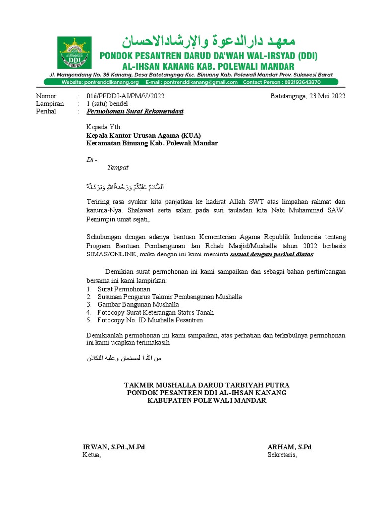 Nomor : 016/PPDDI-AI/PM/V/2022 Batetangnga, 23 Mei 2022