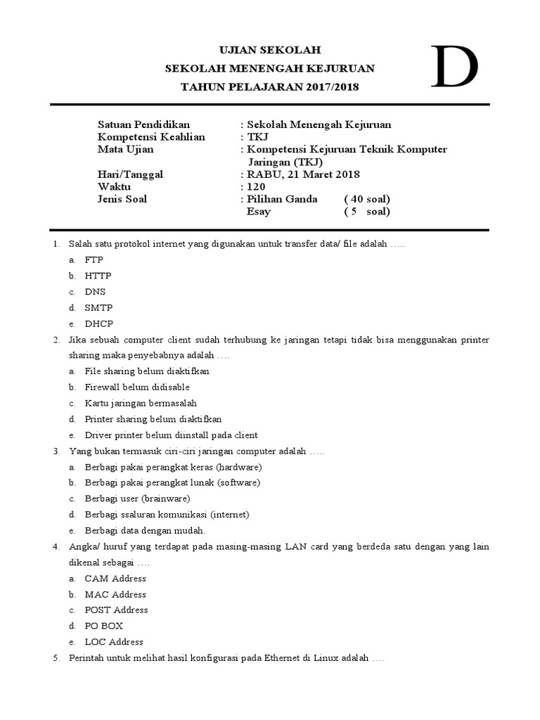Mata Ujian : Kompetensi Kejuruan Teknik Komputer