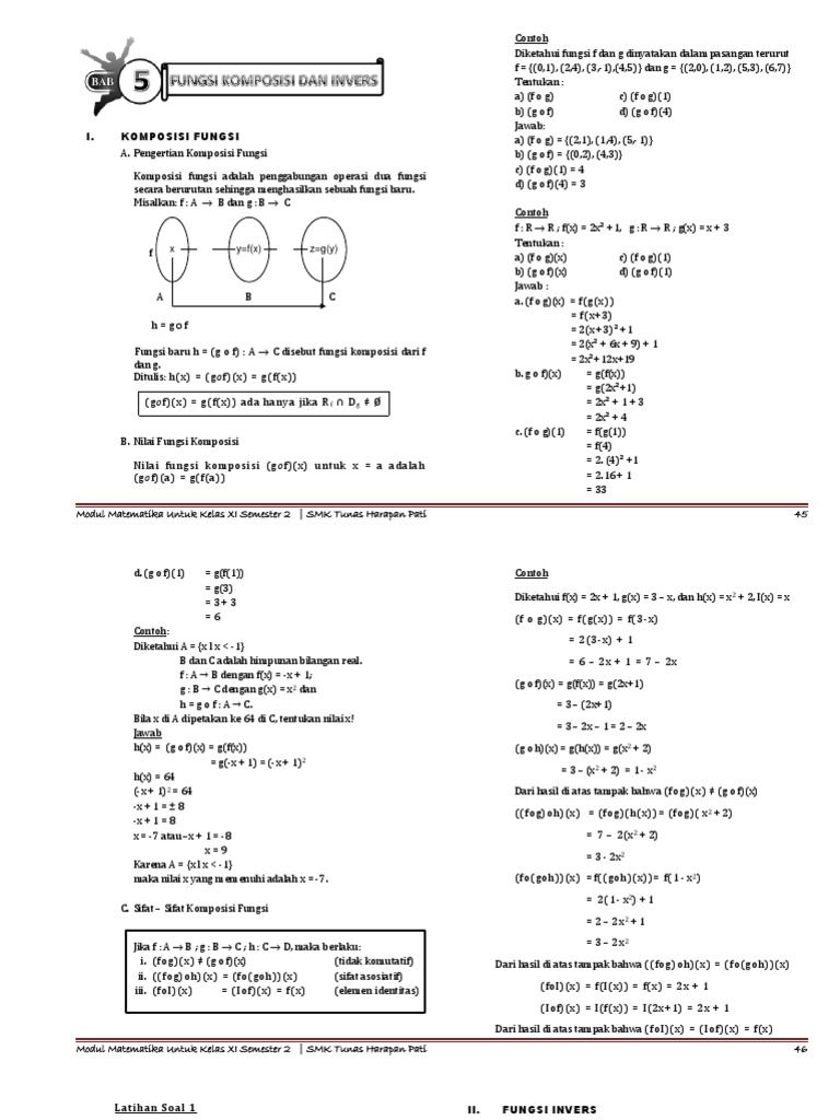 Ditulis: h(x) = (gof)(x) = g(f(x)) b. g o f)(x) = g(f(x))