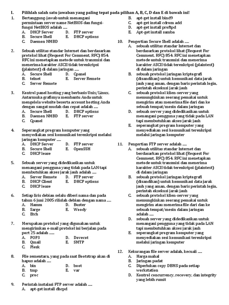 A. DHCP Server D. FTP server 11. Pengertian FTP server adalah .....